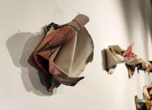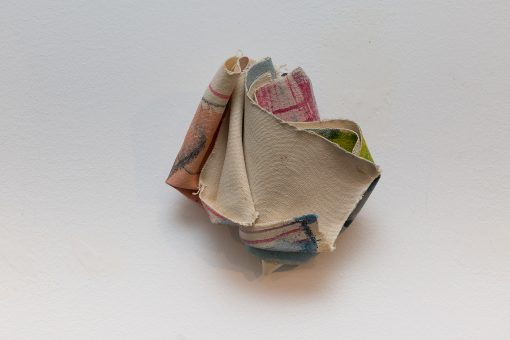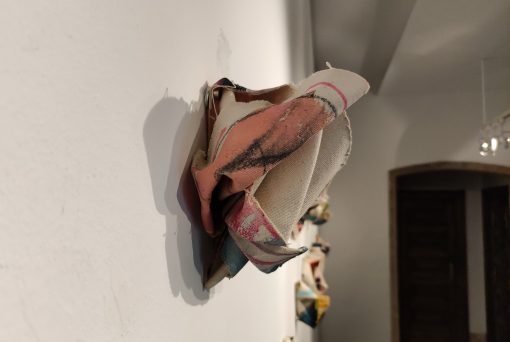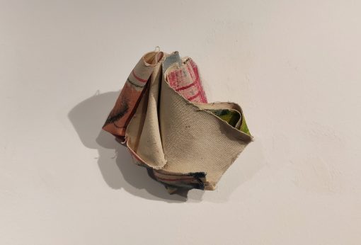 Esta serie de esculturas textiles nace de la reflexión sobre la construcción de la identidad a lo largo del tiempo. Están construidas con cuadros de hace unos años, que he destruido para ello. Tengo una identificación muy fuerte con mi trabajo, que me parece formar parte de mí. Destruir mi obra del pasado para darle nueva forma y así, una nueva vida, es una imagen de cómo el pasado construye el presente. Yo soy hoy porque fui ayer, y fui aquella. So that, destroying my work from the past, for giving it a new shape and so, a new life, it is an image of how the past builds present. La transformación es también asimilación de ese pasado. Así, lo que se esconde en el interior de las primeras esculturas, va asomando poco a poco en las siguientes, y se exhibe en las últimas de manera mucho más explícita. Las obras que sirven hoy de materia prima ya eran en volumen. El volumen forma parte de mi lenguaje plástico desde hace más de 15 años.