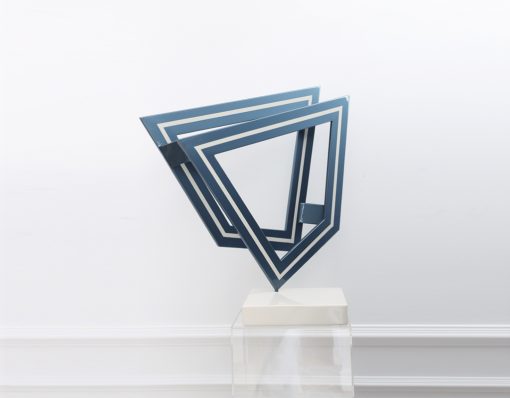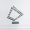 Escultura Geométrica de un cuadrado irregular Están sosteniéndose perfectamente dos cuadrados irregulares buscando la perfección