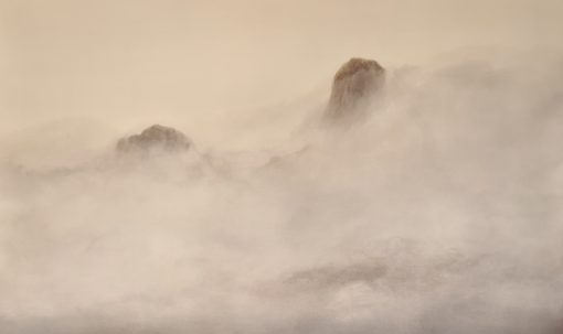 This painting captures the magical serenity of La Pedriza in the Sierra de Madrid through the delicate technique of watercolor. The soft and blended palette recreates a landscape shrouded in mystical fog, where the outlines of imposing rock formations emerge ethereally. The muted tones and misty atmosphere evoke a sense of calm and mystery, transporting the viewer to the tranquil beauty of nature in this mountainous haven.